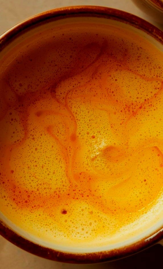 Warm your milk. Any kind. I use coconut milk mostly. Add turmeric and a small pinch of black pepper (it helps your body use the turmeric). Ginger powder or fresh grated. Cinnamon. Cardamom if you have it. A tiny grating of nutmeg.
