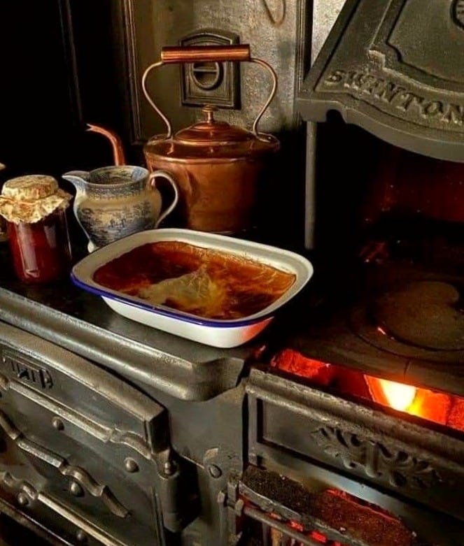 So I light the fire every morning now. The fog rolls in smelling like wet eucalyptus bark. The forest up here drips. I find myself drawn back to the kitchen, to the stove, to pots that simmer low and long. Warmth that you can smell before you can feel it.